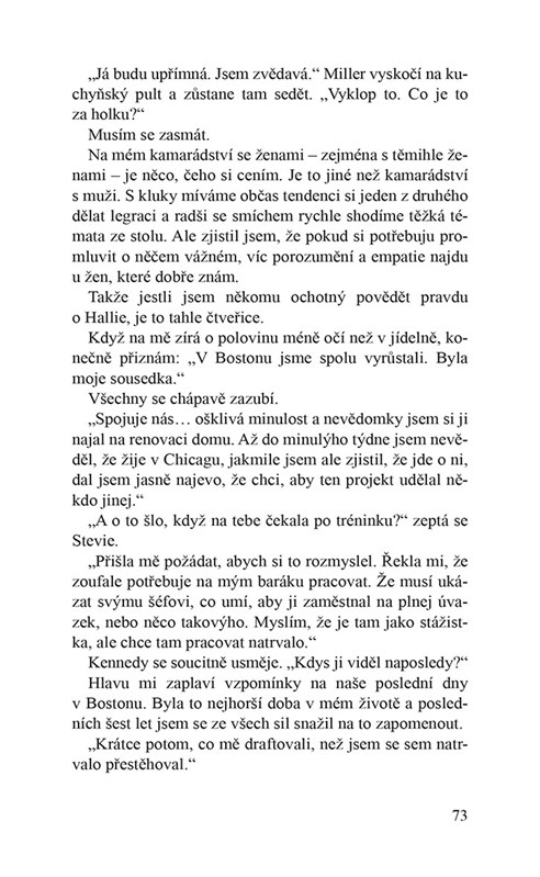 Hallie Hartová šest let potom, co ji opustila její životní láska, získala stáž v prestižní designérské firmě v Chicagu. Za stejné město však hraje hokej její bývalý přítel Rio. Myslela si, že je město dost velké, aby se mu vyhnula, život jí však přichystá nečekané překvapení, když se znovu stane jeho sousedkou. A ještě horší je, že projekt, na němž má pracovat a díky němuž by se její stáž mohla proměnit v trvalou práci, je renovace… Riova domu.