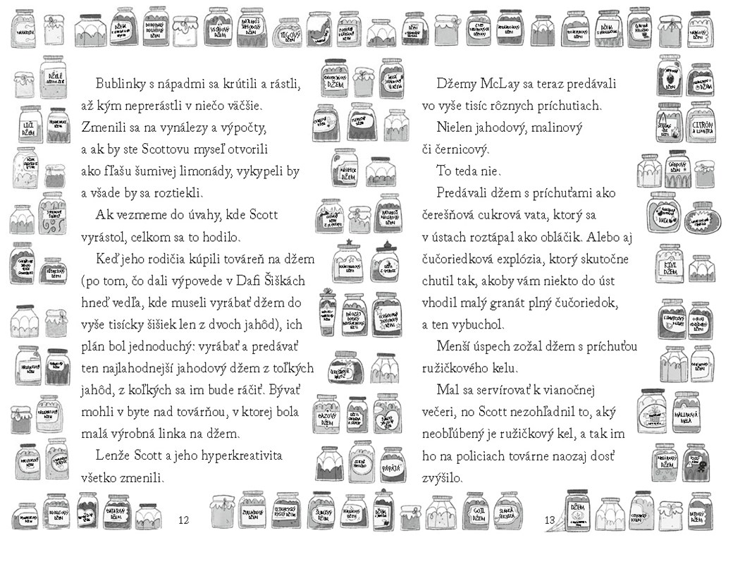 Tento príbeh som vybrala pre svojho syna najmä preto, že aj on veľmi rád skúša a vymýšľa nové veci. Bola som si istá, že ho Scott zaujme. Mala som pravdu. Kniha sa nám čítala dobre. Deťom čítanie uľahčia väčšie písmená a spríjemnia im ho milé a vtipné ilustrácie. Prostredníctvom príbehu sa vydajú na zaujímavú misiu. Susedka Dafné Prefíkaná sa totiž stoj čo stoj chce dostať do továrne a zistiť, ako je možné, že sa im s výrobou džemov tak veľmi darí. Vymyslela plán, ako sa tam dostať. Scott s Fizzy však naň prišli a tak aj oni vymysleli plán, ako jej dať lekciu. Deti tak zažijú napínavé dobrodružstvo, pri ktorom sa neraz zasmejú.
