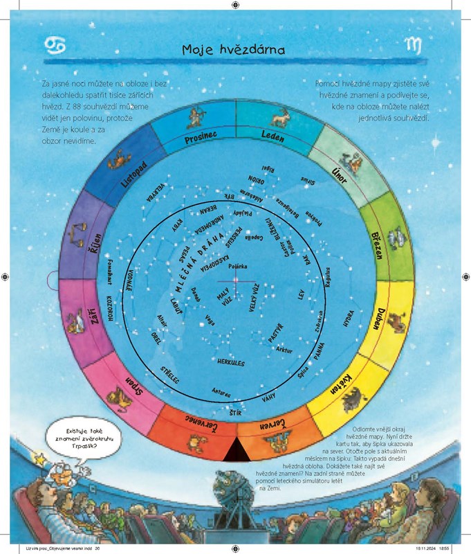 Vydejte se s námi do vesmíru! Žije tam nahoře někdo? Jak vypadá Mezinárodní vesmírná stanice? Co všechno musí zvládnout astronaut a jak se ve vesmíru chodí na záchod? Tato kniha přináší odpovědi na ty nejvšetečnější otázky. Děti se dozvědí spoustu informací o Slunci, planetách a měsících, nahlédnou do každodenního života astronautů ve stavu beztíže a zjistí, proč je naše planeta tak jedinečná a krásná.