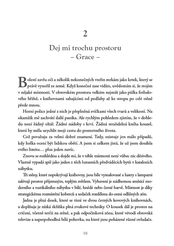 Podle ní za všechno můžu já. Jenže mám podezření, že Grace není tak lidská, jak si myslí, a že to ona nás drží v pasti. Budeme muset spolupracovat, abychom přežili a zachránili všechno, na čem nám záleží. Protože nás něco spojuje. Něco silnějšího než strach... a mnohem nebezpečnějšího.