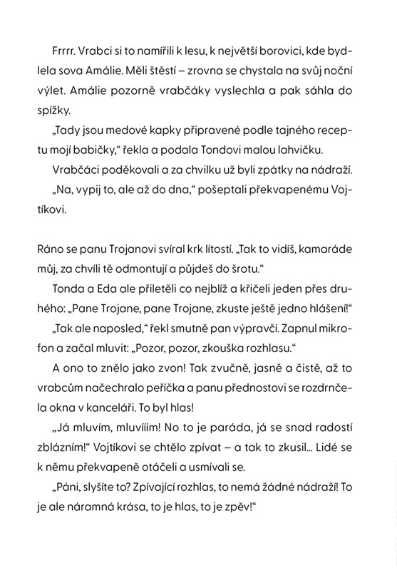 A co všechno se děje na nádražích a železničních stanicích! Každou chvilku se ozve hlášení z nádražního rozhlasu a na nástupišti se objeví výpravčí se zelenou výpravkou. Zvedne ji, zapíská na píšťalku a vlak se dá do pohybu. Nasedněte do něj a vydejte se s námi do pohádky. Cestou potkáte strašidla, statečnou hrdličku nebo nádražního myšáka Fouska.