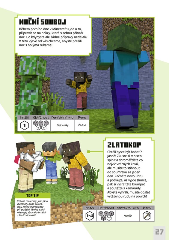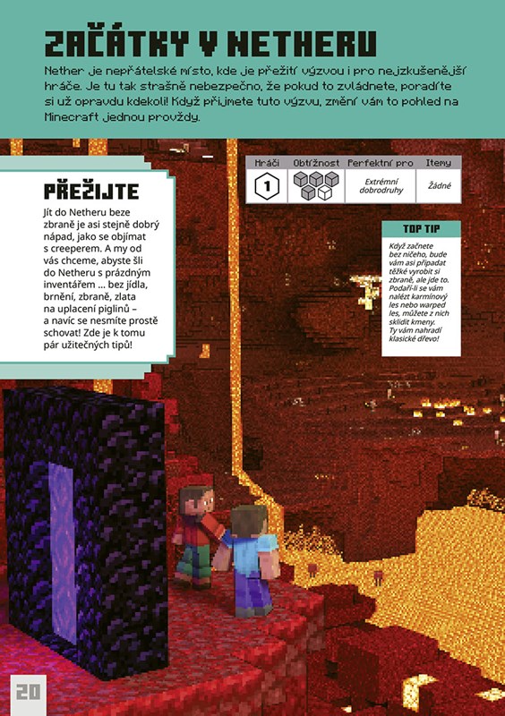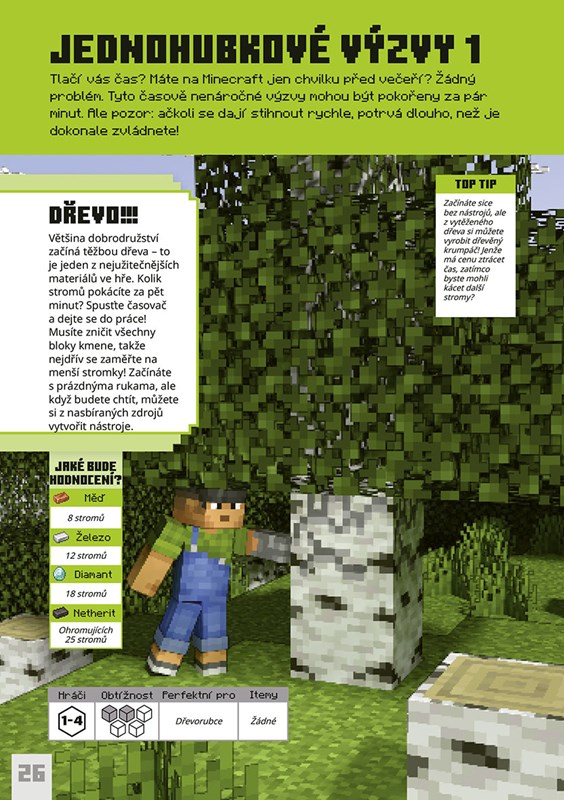 Je jedno, jakým stylem hru hrajete, protože tahle kniha je plná výzev, které vás posunou ještě dál a třeba vás naučí i nové způsoby, jak si Minecraft užívat, ať už s přáteli, nebo na vlastní pěst.