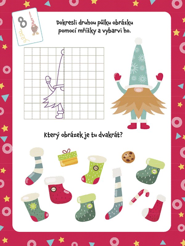 Začni odpočítávat 24 dní do Štědrého dne s pomocí vánočně laděných aktivit. Každý den vyřeš jeden zábavný úkol a za jeho splnění se odměň nalepením krásné samolepky.