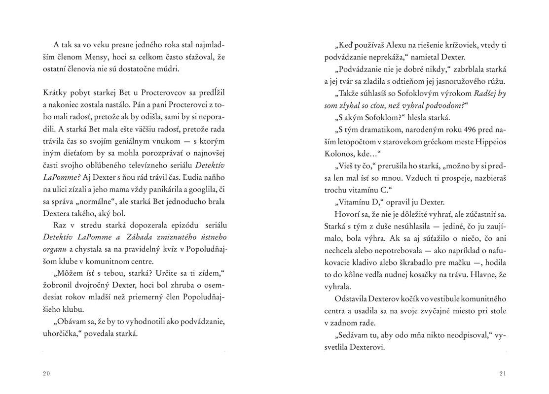 Od chvíle, keď sa Dexter narodil, bolo jasné, že je neobyčajný. Začal rozprávať, už keď mal štyri sekundy a v piatich rokoch zložil osemdesiatšesť maturitných skúšok. A teraz ako desaťročný nastúpil do svojej prvej práce – ako lekár.
