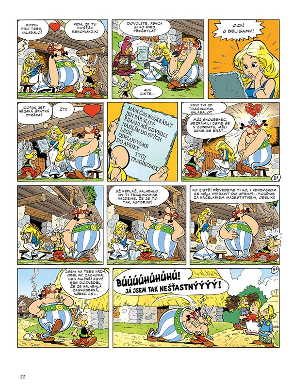 Do vesnice nepoddajných se po dvou letech vrací krásná Halabala, do které se okamžitě zamiluje Obelix. Sotva započatý románek však rychle pohřbí zpráva, že Tragikomixe, Halabalina snoubence, odvlekli Římané do afrických legií. Asterix a hlavně Obelix neváhají ani okamžik a vyrážejí mládenci na pomoc.
