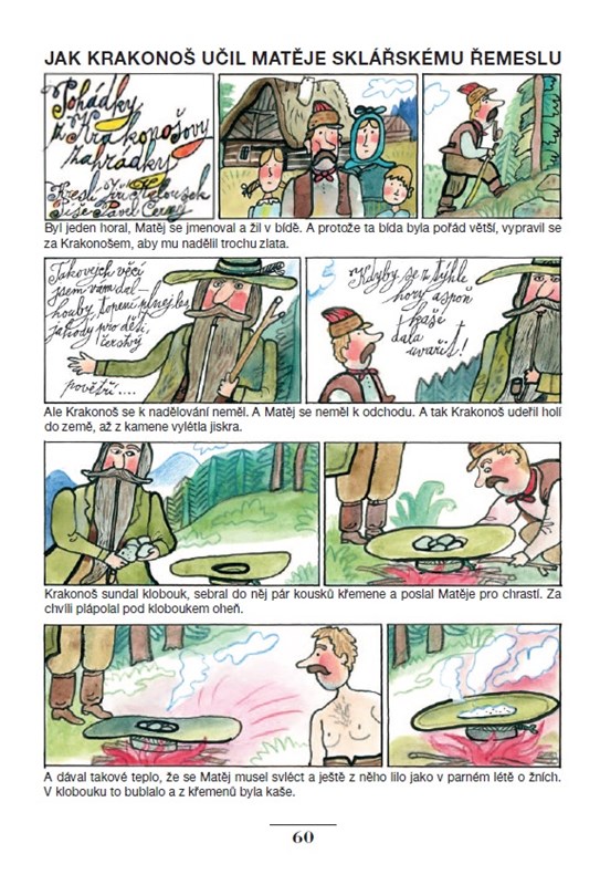 Autoři Jiří Černý, Zdeněk Adla (a později Pavel Zátka) a ilustrátor Jiří Kalousek prosluli dnes již legendárním kresleným seriálem Obrázky z českých dějin a pověstí. Vedle toho vytvořili pro časopis Mateřídouška několik dalších seriálů. Tři z nich jsme teď poprvé shromáždili v jediné knize – jde o svého druhu pokračování starých pověstí z Čech a Moravy. Autoři se zaměřili na tajuplné pověsti z hradů a zámků. Vedle toho vytvořili úsměvné kreslené pohádky, jejichž hlavní postavou je bájný Krakonoš.