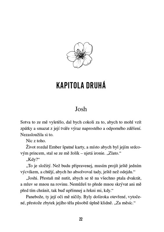 Josh Walker rád balancuje na hraně a je snem každé dívky. Oči má však jen pro Ember Howardovou. Společně ustáli smrt jejího otce, armádní leteckou školu i vztah na dálku. Teď před ně ale život staví novou výzvu – Josh míří do Afghánistánu. Do země, která ho už jednou málem zabila. Ani jejich poslední společné dny naplněné láskou, vášní a spřádáním plánů do budoucna Embeřin strach nezmírní. Smrt jejího otce ji totiž naučila, že některé překážky nepřekoná ani láska. Letecká škola skončila. Začíná válka.