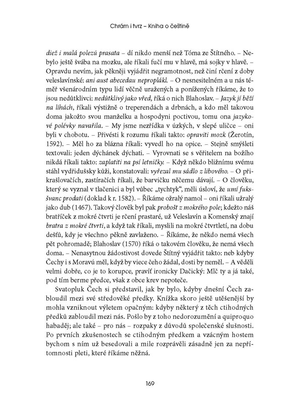 Proslulé dílo, jež je nejen odborným výkladem, ale především vyznáním lásky k českému jazyku. Téměř na osmi stech stranách autor postihuje češtinu ve všech jejích mnohotvárných a nevyčerpatelných aspektech, z hlediska mluvnického i slohového. Krátké kapitoly věcně a utříděně, vtipně, s humorem a ironií, rozhněvaně i kriticky popisují a analyzují způsob našeho vyjadřování. Jde o poutavé vyprávění o naší mateřštině, o úžasné kulturní stavbě podobné chrámu i tvrzi.