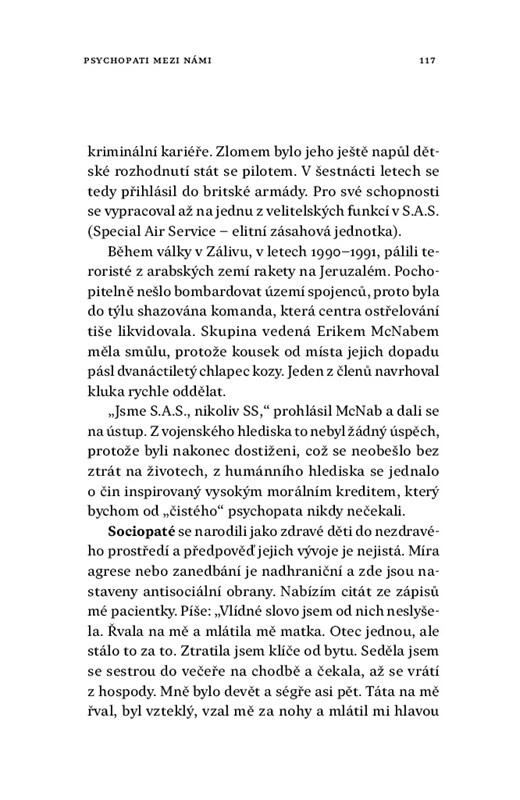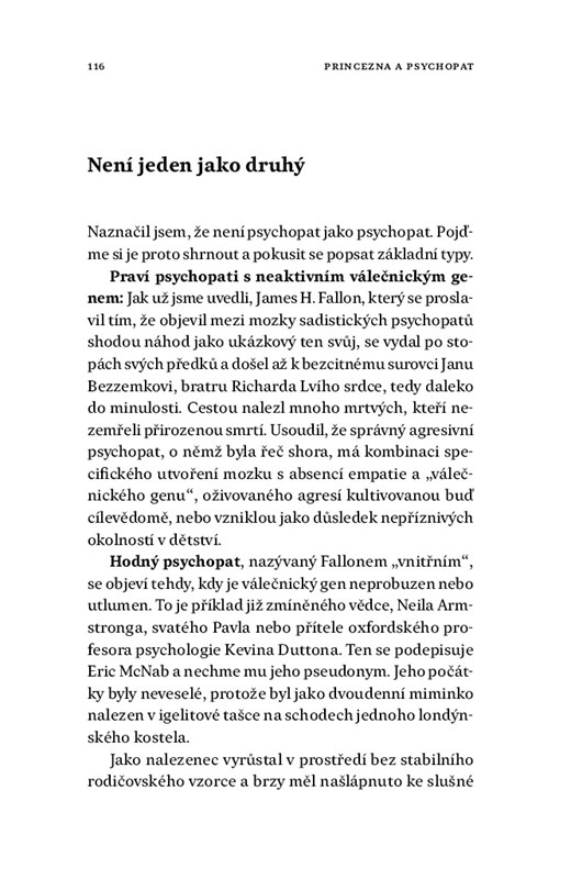 V knize najdete nejen odborná vysvětlení nebo doporučení, jak poznat psychopata a jak se k němu chovat, ale i čtyři příběhy inspirované skutečnými životy. Co dělat, když se ze zamilovaného vyklube manipulátor? Je možné s psychopatem mnoho let žít, aniž byste poznali, s kým máte tu čest? A jak to dopadá, když vám touha, občas i po blahobtyu, zaslepí oči? Část je věnovaná i případům, kdy soužití s psychopatem nebo setkání s ním skončilo tragicky.
