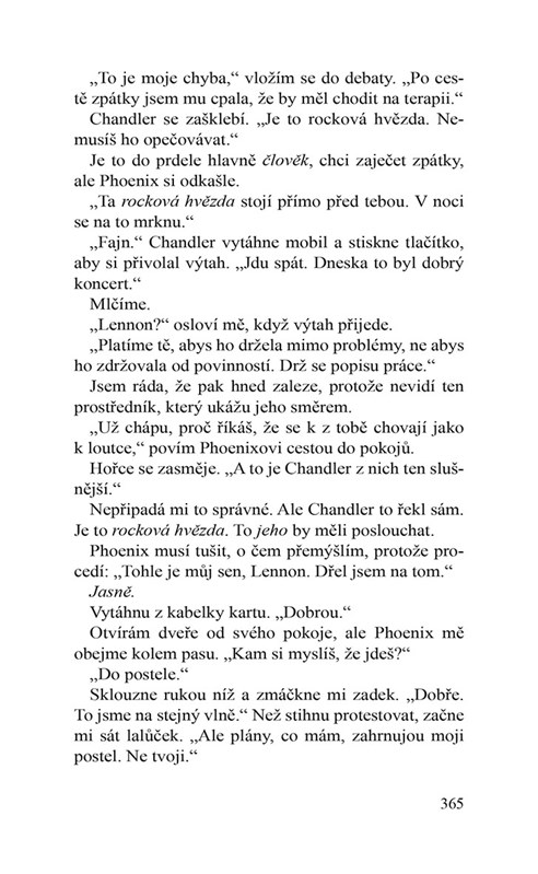 Byl to talentovaný rebel, kterého všichni chtěli. Já byla bezvýznamná šprtka, kterou všichni nenáviděli. On byl předurčený k tomu, aby se stal hvězdou. Já jsem byla předurčena zůstat bezvýznamnou nýmandkou. Dokud mě nepřesvědčil, že jsem výjimečná... A pak mě zničil. Nikdy jsem si nemyslela, že Phoenixe Walkera ještě někdy uvidím, poté co mi zlomil srdce, ale osud měl jiné plány. Jedno turné. Osm týdnů. Čtyřicet koncertů. Nespočet příležitostí, jak mu to oplatit. Svět si myslel, že je bůh... Ale já znala pravdu.