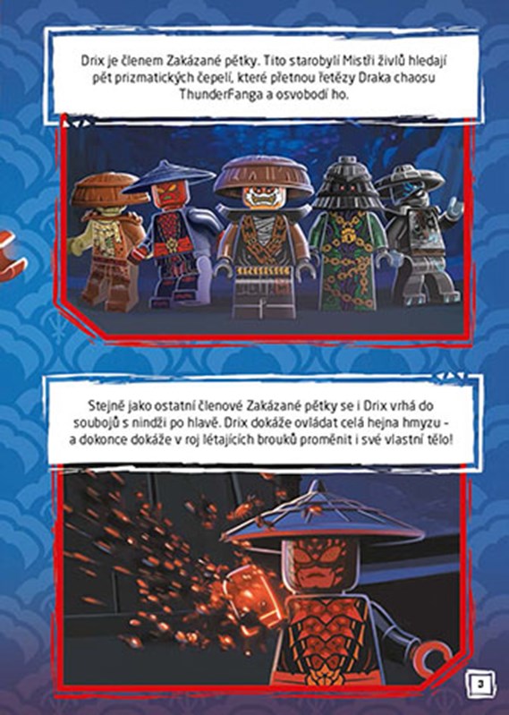 Pozor! Zakázaná pětka unikla z mikrosvěta Netheru! Drix, živelný Mistr roje, je členem nebezpečného gangu – a plánuje zaútočit na nindži svým smrtícím hmyzím hejnem. Vyřeš zábavné úkoly, užij si legrační komiks a příběhy a objev hromadu způsobů, jak si můžeš hrát se svou minifigurkou Drixe a jeho robotickým Štířím vozítkem. Dokážeš zabránit tomuto ďábelskému neřádovi, aby vypustil Draka chaosu?