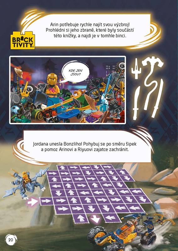 Mladý Arin si plní sny tím, že se z něj stává člen nindžovského týmu! Velmi brzy ovšem zjistí, že schopnosti, které nově ovládl, jej nijak nepřiblíží k jeho hlavnímu cíli – najít rodiče. Ve snaze obrátit štěstí na svou stranu se spojí se svým nepřítelem, Rasem. Prožij s Arinem úchvatná dobrodružství, vyřeš strhující aktivity a přečti si zábavný příběh i komiksy o Arinově turbulentním vztahu s jeho novým spolucestujícím. Sestav si minifigurku Arina a s pomocí několika z jeho zbraní vyřeš zadané úkoly!