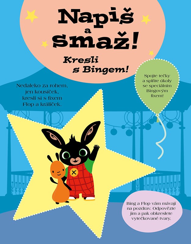 Použijte speciální fix a pomozte Bingovi obtahovat vytečkované tvary, čísla a slova v téhle skvělé knížce plné zábavy. Pak všechno smažte a bavte se u ní znovu! Je v ní spousta úkolů a omalovánek, které Bingovi pomůžou procvičovat držení fixu a užít si to.