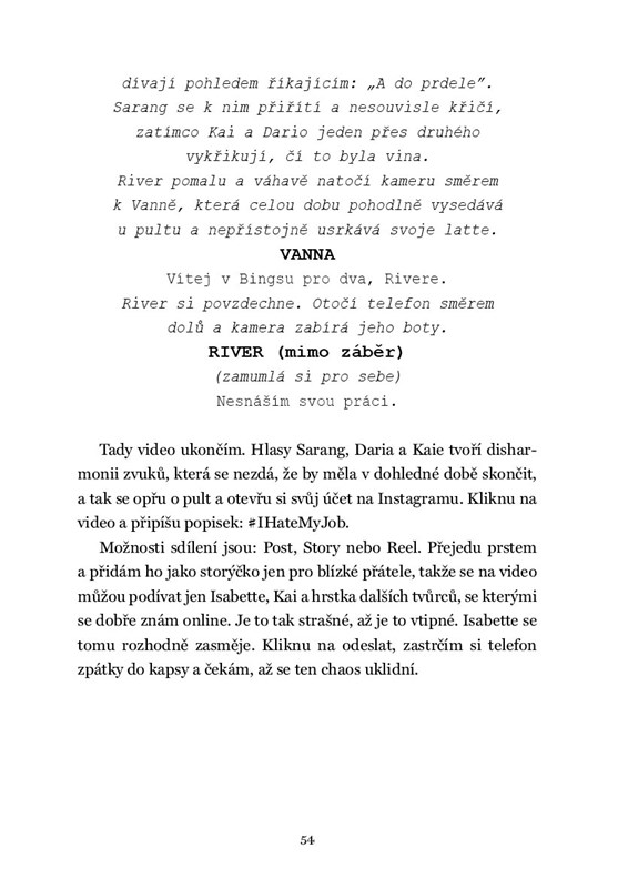 Seznamte se: River Langston-Lee. Za posledních 24 hodin opustil svou přítelkyni, nedokončil testy SAT a dal výpověď v podniku svých rodičů. Naštěstí mu kamarád dohodí práci v kavárně Bingsu pro dva, kde mu radost kazí jen šíleně nesnesitelná kolegyně. Když se však video jejich pracovních eskapád stane virálním, internet si žádá jediné: lásku. Mezi Riverem a Sarang to ale spíš vře, než jiskří – a předstírat romanci kvůli fanouškům a zákazníkům? To je recept na katastrofu… nebo možná na něco úplně jiného.