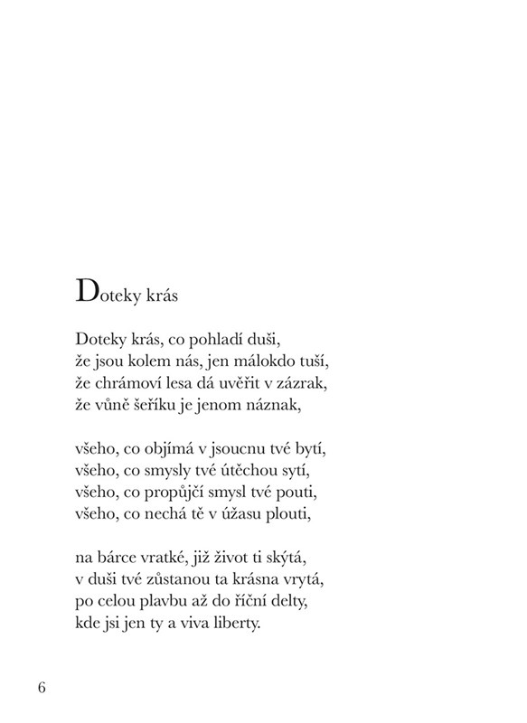 Tato sbírka vás provede galerií půvabných zátiší, dramatických scén i tajemného příběhu. Každá báseň přináší melodii, rytmus a lyriku, které pohladí duši a přenesou vás do světa přírody, ročních období, živlů i lidských emocí.