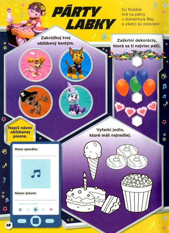 Vyňuchajte s Rockym cestu do centrály, pomôžte Chasovi nájsť kravičku Bettinu, vylúpnite si z kartónu figúrky a vytvorte skvelé modely labiek, alebo sa zabávajte s hrami či papierovými drobnosťami. Vnútri knižky nájdete viac ako 100 ligotavých samolepiek.