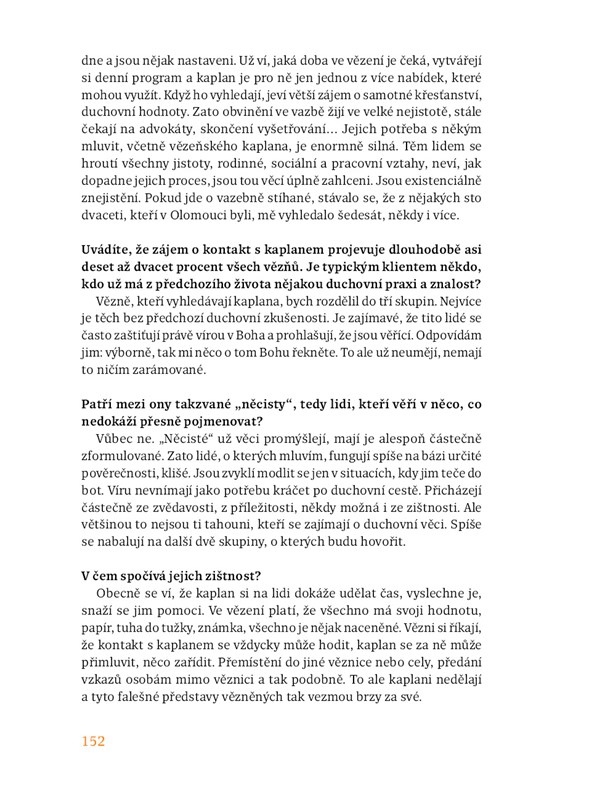 Svět za „katrem“ si většinou nepřejeme navštívit. Otto Broch, hlavní vězeňský kaplan České republiky, v rozhovoru s právníkem Ondřejem Šťastným přibližuje důvody, které ho vedly k tomu, že do tohoto světa dobrovolně vstoupil a učinil ho svým celoživotním působištěm. V rozhovoru, který je zároveň zajímavým dialogem dvou stran v přístupu k odsouzeným a trestaným, vypráví Otto Broch o základech svého přístupu k vězňům, o práci vězeňského kaplana a zkušenostech s tvrdým a nemilosrdným světem nápravných zařízení. Přibližuje svůj pastorační přístup, který by se dal shrnout větou „vzít za ruku a jít společně kus cesty“. Knihu doplňuje více než desítka příběhů jednotlivých vězňů, doporučující slovo Brochových kolegů Bohdana Pivoňky a Ladislava Heryána a především krásné a hluboké fotografie Jindřicha Štreita.