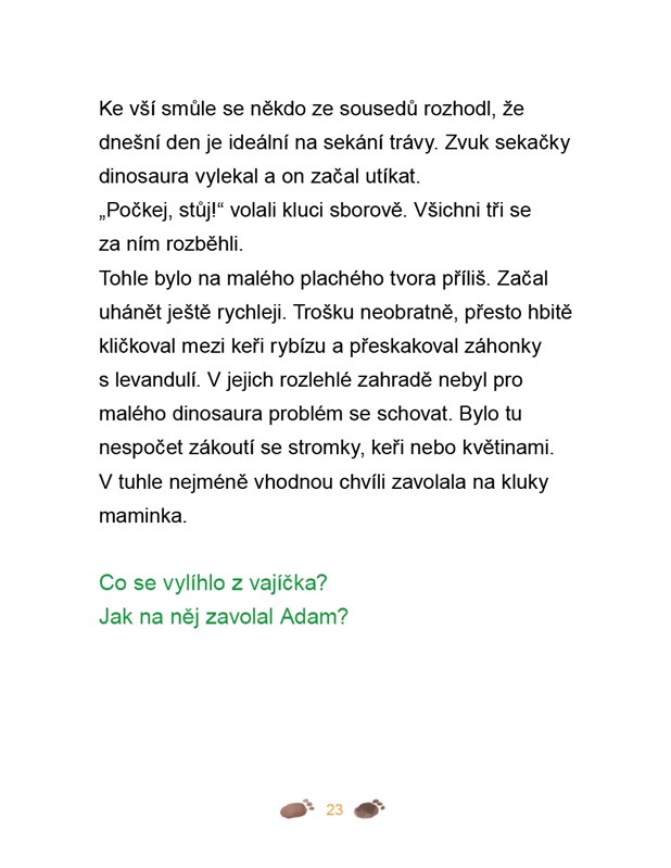 Když sourozenci Tom, Kuba a Adam vykopou na zahradě podivné vajíčko, netuší, že drží v rukou objev století. Zabalí ho do mikiny, schovají v kůlně – a co se nestane? Vyklube se z něj opravdový dinosaurus. Mít doma pravěké zvíře ale není jen tak. Bude z toho pěkný poprask!