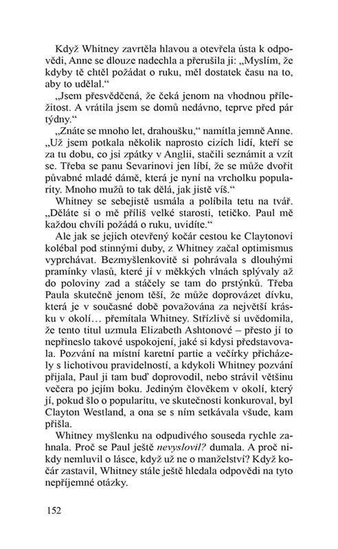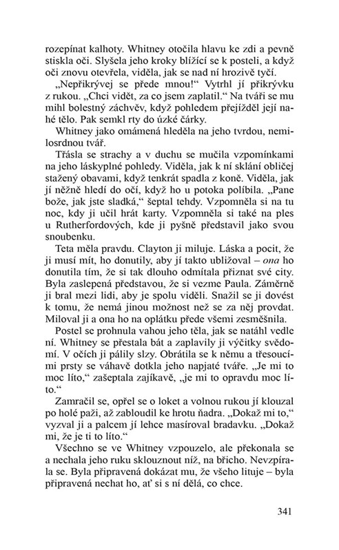 Whitney žije se svým otcem na venkovském anglickém panství. Ten nedokáže prudkou, vášnivou a vzdorovitou dívku zvládnout a posílá ji do Paříže k tetě. Tam Whitney vyrůstá v půvabnou mladou dámu. Po návratu uvažuje, že se provdá za svou dávnou lásku. Vévodu z Claymore, dobyvatele ženských srdcí, okouzlí její krása a inteligence. Využije finančních problémů jejího otce a nabídne mu půjčku výměnou za její ruku. Whitney se brání, přestože ji vévoda přitahuje.