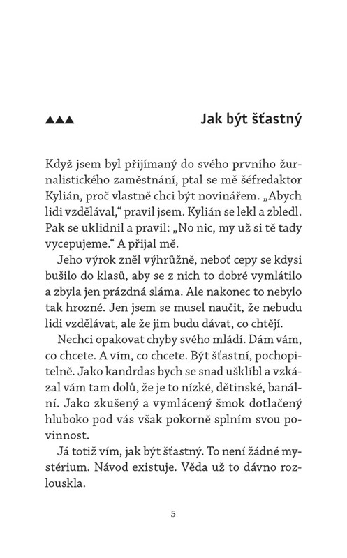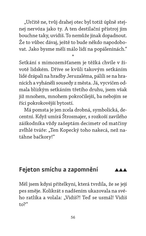 Jak si poradit s láskou, nevěrou a bezradností rozumu. Co dělat, když vaše matka nemá ráda Jiřího Sováka. Jak zvládnout, že nejste Jaromír Jágr ani Patrick Swayze. Jak se vyrovnat s vlivem Jeana-Paula Belmonda na váš sexuální život. Jak naložit s egyptským pornem, latexem a fetišisty spodního prádla. Jak nedat přes hubu Seanu Connerymu, i když si to zaslouží. A konečně zajisté: jak promlouvá Bůh k ateistům. Jan Stern provokuje český kulturní prostor téměř dvě desetiletí. V nové knize se přihlašuje k nejlepším tradicím české humoristické literatury.