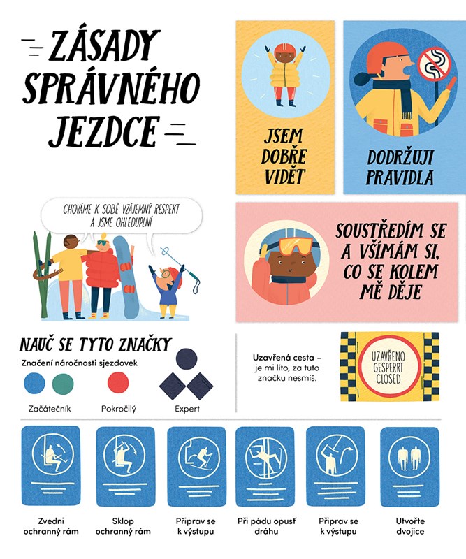 vědět. Třeba jak zabrzdit, proč mít na hlavě helmu nebo jak dlouhé lyže jsou pro
