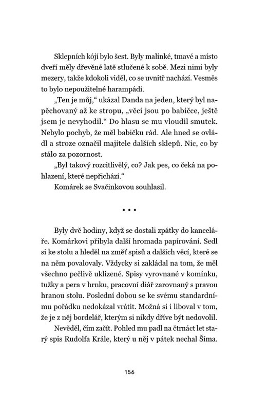 Kapitán Jaroslav Komárek neprožívá zrovna nejklidnější období. S bývalou manželkou se dohaduje kvůli alimentům a jeho dlouholetý parťák vážně onemocněl. Snaha dát si život do pořádku ale musí počkat – z rybníka vyplavala mrtvola mladé ženy. Obětí je pohledná masérka. A vrahem? S největší pravděpodobností některý z jejích sousedů. Obyvatelé zcela obyčejného bytového domu totiž skrývají nejedno tajemství.