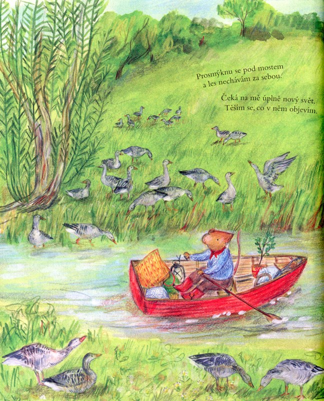 Myšák se tentokrát vydává na cestu, která ho zavede až k oceánu. Během dvaceti čtyř hodin uvidí, jak se krajina kolem řeky proměňuje – od paprsků ranního slunce přes dešťovou přeháňku až po klidnou noční oblohu. Na své cestě potkává přátelské bobry, hraboše a nejrůznější vodní ptáky. Přidej se k němu a nakoukni do rozkošných zvířecích domečků! Kniha obsahuje také mapku myšákovy trasy a přehled vybavení, které si na cestu přibalil – takže se u něj můžeš inspirovat, co si sbalit na výpravu do přírody.