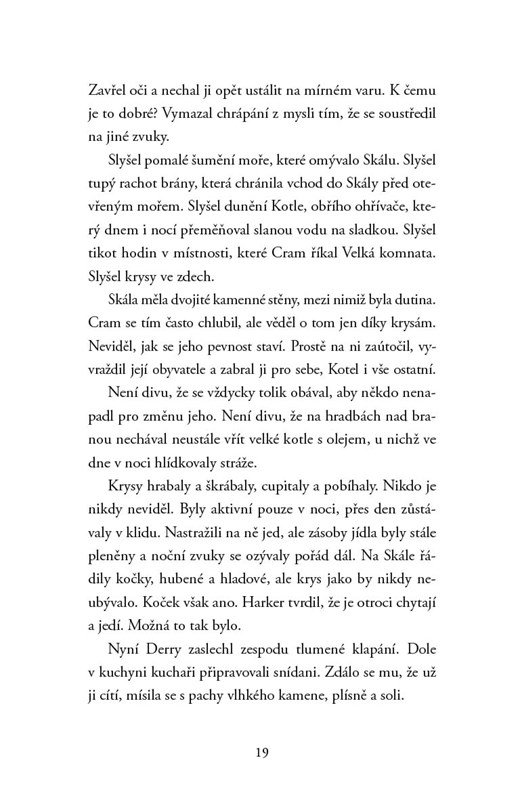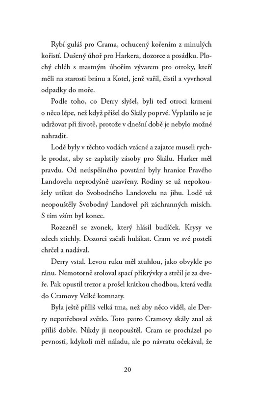 Derry nikdy nepoznal nic jiného než život zajatce na pirátském útočišti jménem Cramova Skála. Ostatní mladí vězni se mu vyhýbají, protože je Cramův ochutnávač jedů – a navíc umí číst, což je dovednost považovaná za nebezpečnou. Vše se změní, když na ostrov dorazí cestovatelka na útěku před zlověstnými katy z ostrova El. Než zmizí, předá Derrymu kouzelný zápisník plný tajemství, který by mohl odpovědět na mnoho otázek. Kdo Derry je? Odkud pochází? A proč by někdo riskoval život, aby mu to pomohl zjistit?