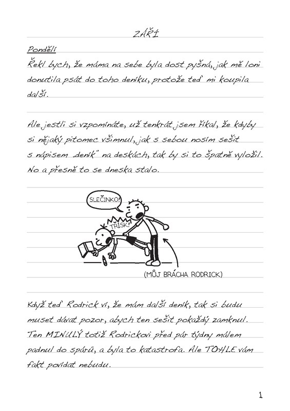 Když je vám tak jedenáct, může to být fakt opruz. A nikdo to neví líp než Greg Heffley, protože se najednou ocitl na škole, kde malí poseroutkové, jako je on, naráží každý den na chodbách do kluků, kteří jsou větší, silnější a holit by se mohli dvakrát denně. Deník malého poseroutky není jen tak obyčejný deníček. Greg tenhle sešit dostal od mámy. A to přesto, že deníky jsou přece jenom pro holky! Takže si nemyslete, že to bude nějaké „milý deníčku“ tohle a „milý deníčku“ támhleto