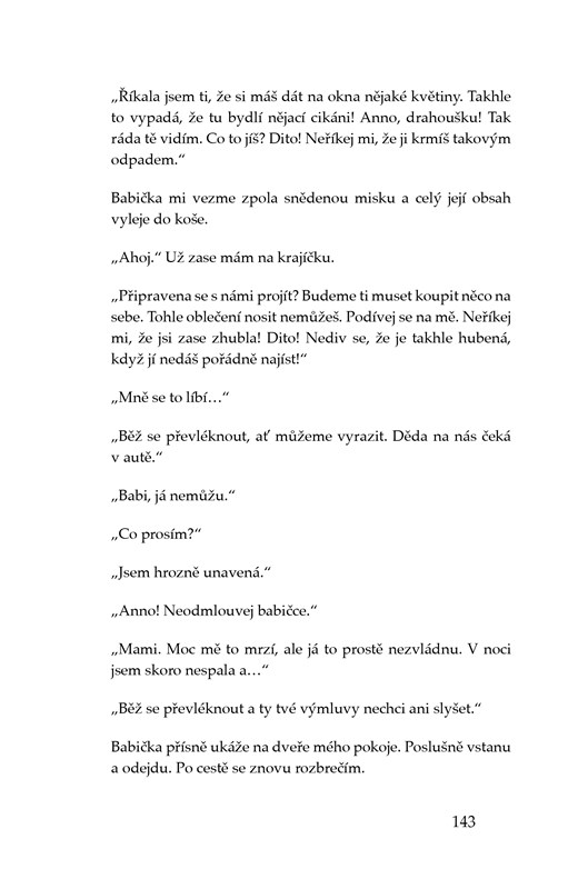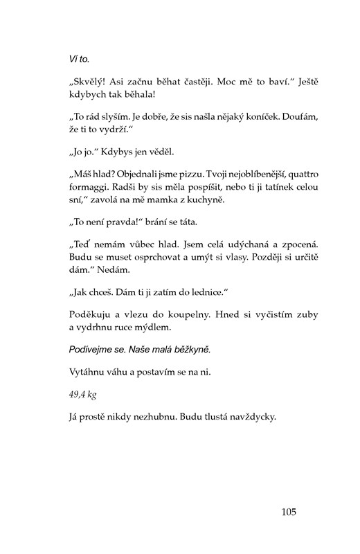 Anna má skvělé rodiče, koníčky, spoustu přátel, první lásku. Jenže její idylku naruší Ana. Není to nová kamarádka, ale anorexie, která ji postupně proměňuje v hromádku neštěstí. Její život ovládne jídlo a počítání kalorií. Ana s sebou navíc přináší bulimii, deprese, lži a izolaci od okolí. Kniha čerpá ze skutečných událostí a nabízí autentický pohled na poruchy příjmu potravy.