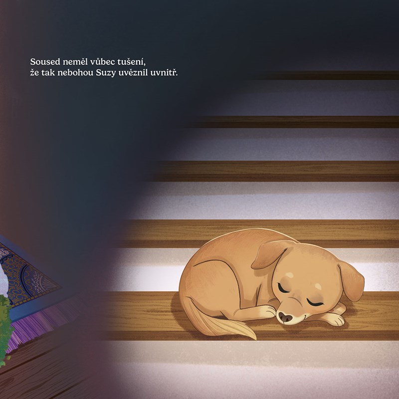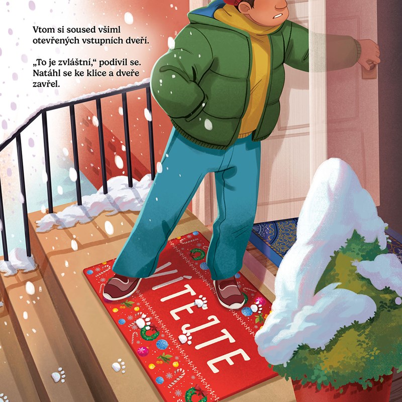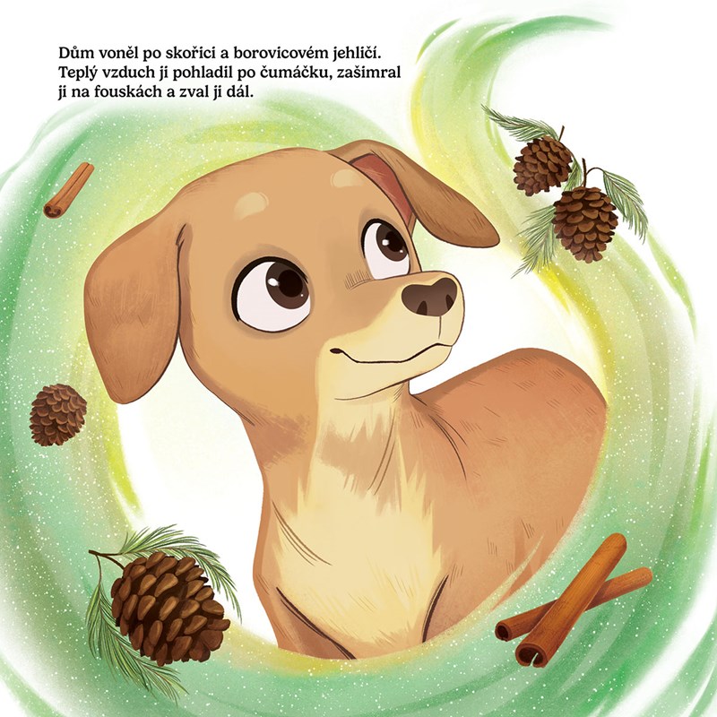 Už chyběly jen dva týdny do Vánoc, když se opuštěný pejsek potuloval sám zimní krajinou, zavátý sněhem a hladový. Vtom fenečka spatřila světýlko, které ji zvalo do pootevřených dveří, kde cítila teplo, vešla dovnitř s nadějí rozechvělým srdíčkem – třeba najde víc než jen úkryt...