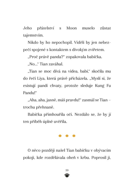 Dvanáctiletý Tian tráví prázdniny u babičky v kouzelných horách čínské provincie S‘-čchuan. Nejradši by ale seděl u počítače a hrál hry. Navzdory snaze sestry Liyi i babičky se bez her strašně nudí. Jenže jednoho dne se všechno změní. Při sbírání dřeva v lese potká Tian nečekanou kamarádku – malé pandí mládě. A právě tohle setkání navždy změní jeho život…