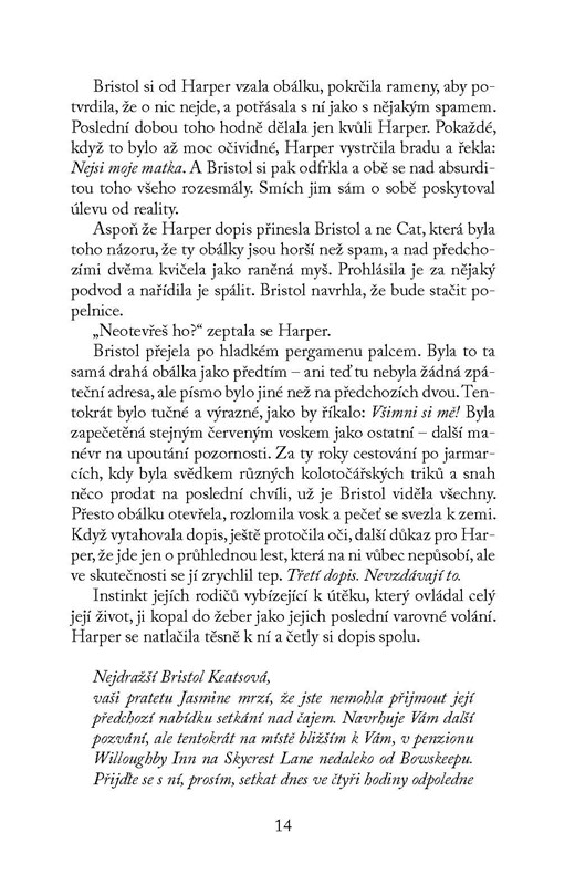 Bristol Keatsová a její sestry z městečka Bowskeep přišly o oba rodiče. Série tajemných dopisů však přinese šokující odhalení – zdá se, že jejich otec je naživu v podivné říši, kam ho unesly děsivé bytosti. Bristol se vydává do země bohů, víl a netvorů, aby ho zachránila, a neváhá kvůli tomu uzavřít smrtelně nebezpečnou dohodu s králem víl Tyghanem. Netuší však, že právě on přinutil její rodiče k životu ve vyhnanství. A že je stejně odhodlaný jejího otce najít – živého, či mrtvého.