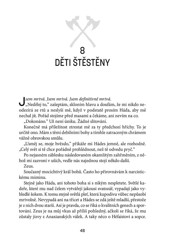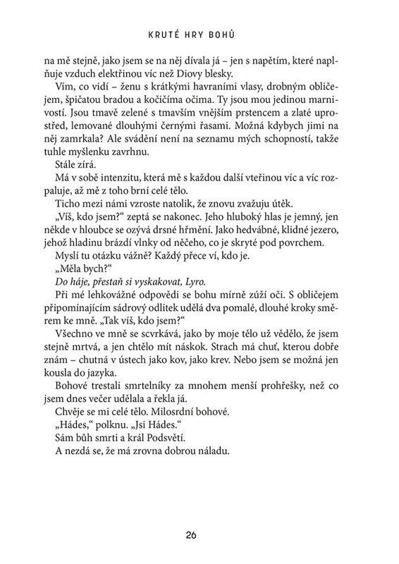 Lyra, obyčejná úřednice z Řádu zlodějů, poklidně přežívá v San Francisku a pokouší se vyrovnat s kletbou, kterou na ni uvrhl samotný Zeus. Když je ale v nebezpečném Klání bohů vybrána jako Hádova šampionka, nezbude jí než bojovat o vlastní život. Mezi vražednými úkoly však brzy pozná, že Hádes má svá vlastní pravidla i cíle. Jenže proč si vybral právě ji? A proč jí srdce pokaždé málem vyletí z hrudi, když jí řekne „moje“? Jedno je však jasné. Smrt hodlá zvítězit za každou cenu.