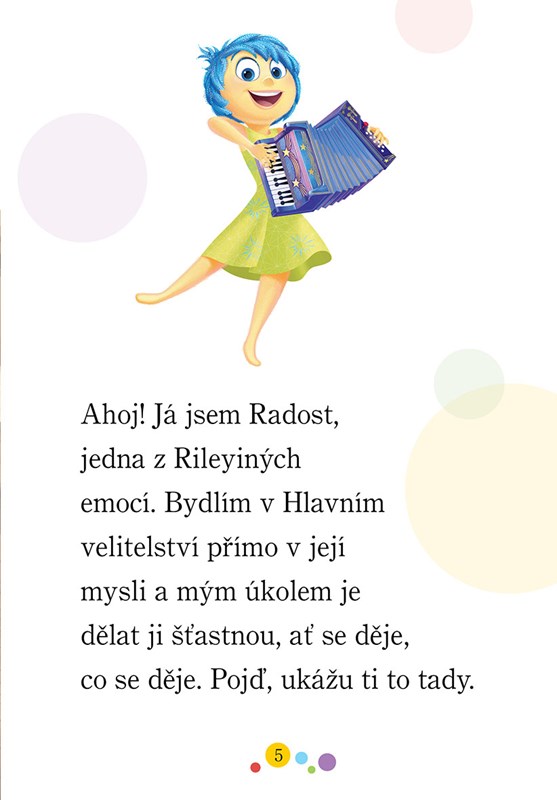 Seznamte se s emocemi, které sídlí v hlavě Riley! Jejich úkolem je zajistit, aby byl Riley šťastná a spokojená. Přečtěte si příběh z oblíbeného filmu psaný v jednoduchých větách velkými písmeny a procvičte si při tom své čtenářské dovednosti.