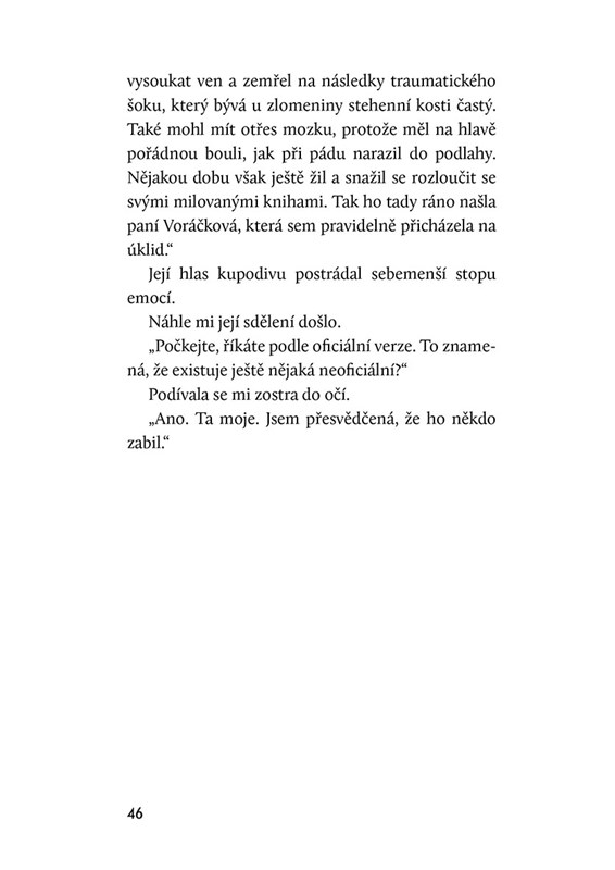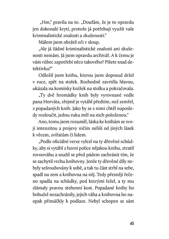 V tomto románu Miroslav Macek s mistrovskou elegancí a jemnou ironií propojuje napínavé detektivní pátrání s melancholickým ohlédnutím za mládím. Je to příběh o hluboké vášni ke knihám – vášni, která může být pro člověka spásou i zkázou.