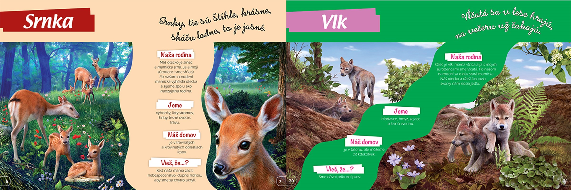 Srnka, líška, vlk a iné zvieratká z lesa ti predstavia svoju rodinu, povedia, čo im chutí, kde bývajú, a dozvieš sa o nich aj niečo, čo možno nie je všeobecne známe.