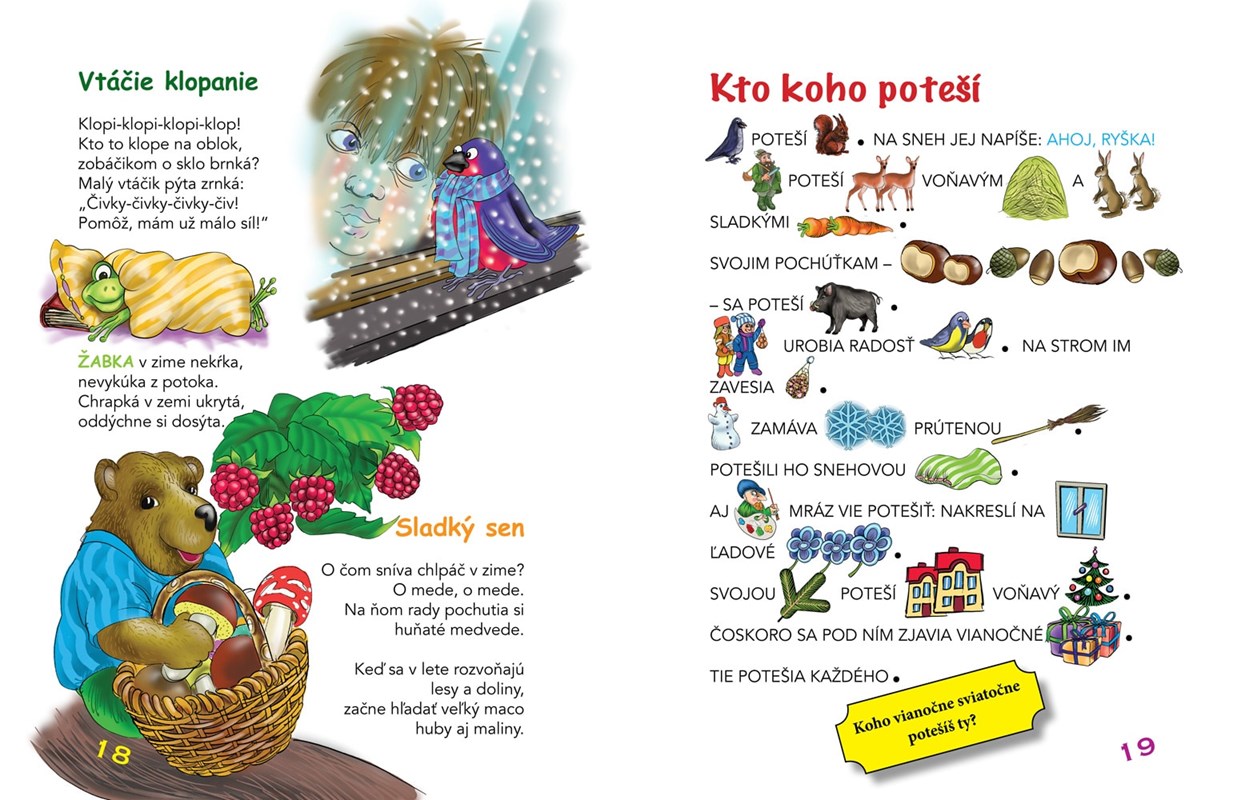 Čo sa stalo so školou, keď zaspala do školy? Ako sa dostal les do postieľok a mlieko do lesa? Čo vyzvonil zázračný zvonček? Kto sú kolieskoví kamaráti a prečo ochorelo autíčko? Na akú záhadu natrafila Johanka? Odpoveď na tieto a veľa ďalších otázok nájdeš vo veselých príbehoch, básničkách, hádankách aj v maľovanom čítaní, ktoré si môžeš doplniť o vlastné kresbičky...