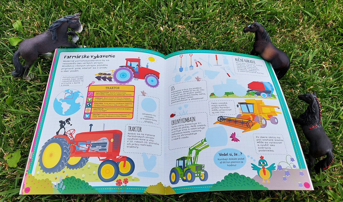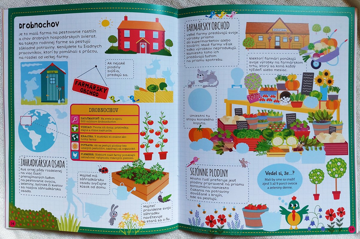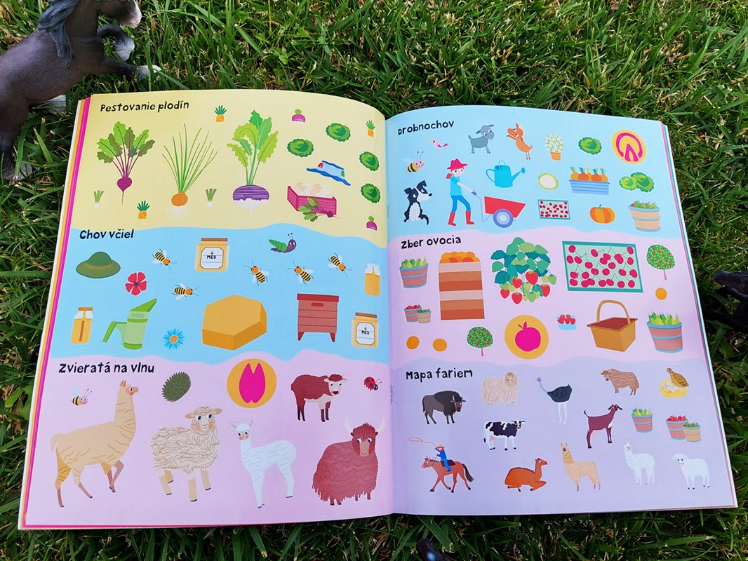 Táto bohato ilustrovaná knižka s nálepkami je plná pestrých obrázkov a faktov o farme, ktoré sú zábavné a zároveň aj poučné. Pomocou nálepiek môže dieťa vyzdobiť stránky plné fascinujúcich informácií. Knižka rozvíja detské myslenie. Deti sa môžu aktívne zapojiť do vyplňovania knižky plnej zaujímavostí. Vďaka šikovnosti a bystrosti určite doplnia nálepky na správne miesto. Hravou formou sa tak učia.