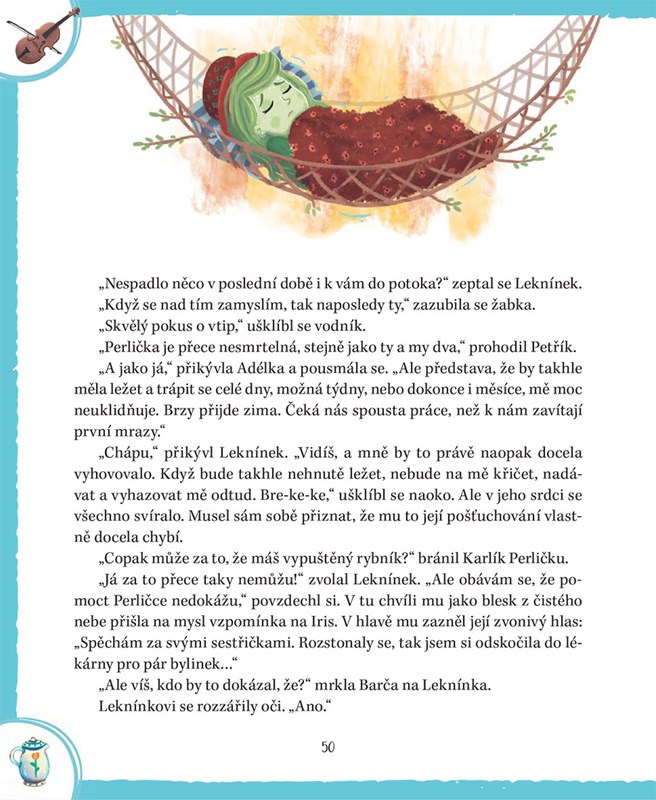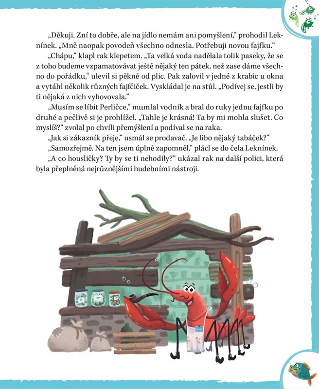 Kdyby velká povodeň nerozbila stavidlo na Leknínkově rybníku, žil by tam spokojeně dál. Jenže voda začala vysychat, a tak mu nezbylo nic jiného než si hledat nové bydlení. Co takhle nastěhovat se do sousedního potoka? Nápad by to byl skvělý, kdyby tam už nebydlela vodnická panenka Perlička, která ho tam nechce.