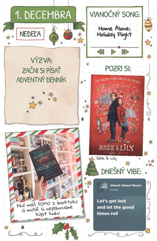 Prvého decembra sa však stane niečo, vďaka čomu dá sviatkom ešte jednu šancu: dostane adventný kalendár plný rôznych úloh a navyše stretne Jaxona. Ten sa mal v tejto chvíli pripravovať na kariéru v NHL, no namiesto toho sa objaví v Addinom obľúbenom kníhkupectve a dá jej ponuku, ktorú nedokáže odmietnuť...
