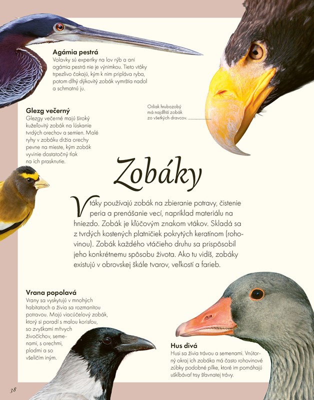Vzlietnite k oblohe a objavte niektoré z najúžasnejších vtákov našej planéty. Prečítajte si neuveriteľné fakty a fascinujúce príbehy o mnohých známych aj neznámych druhoch. Táto krásna kolekcia vyše 90 vtákov, od miniatúrneho kolibríka, ktorý mávne krídlami 200-krát za sekundu, cez harpyu opičiarku, ktorá je postrachom pre opice a leňochy, až po obrovského kondora, vám priblíži úžasný vtáčí svet.