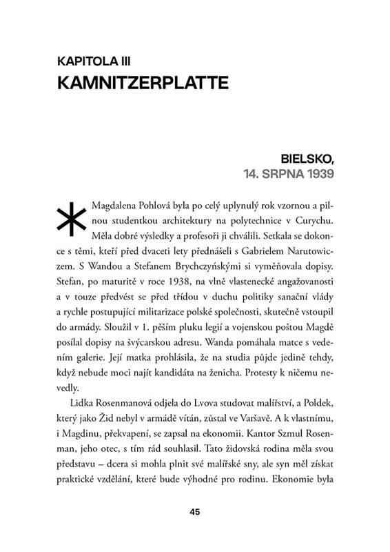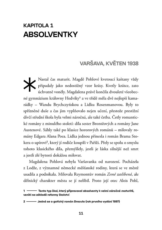 Píše se rok 1938 a Magdalenu Pohl, dědičku lodžského továrníka německého původu, čeká maturita. Bezstarostné mládí prožívá v obklopení polských i židovských přátel.