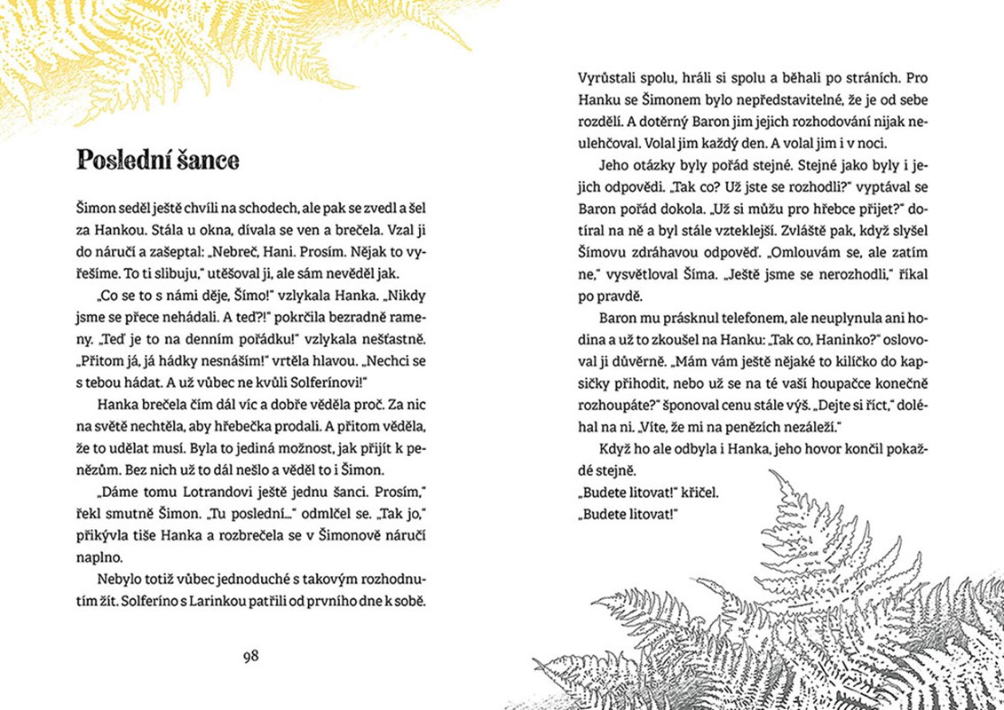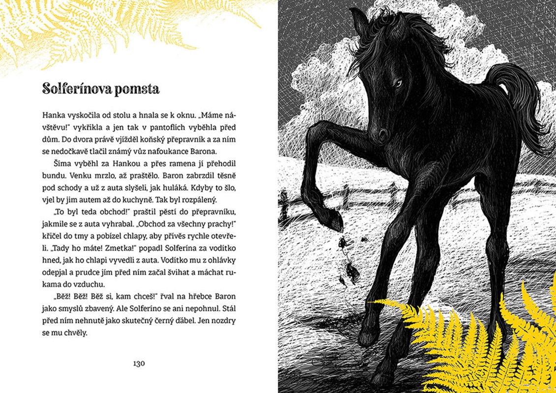 Starou, opuštěnou farmu U Zlatého kapradí střeží podivná divoká zvířata. Přesto se tu Hanka s Šimonem rozhodnou žít a hospodařit. Když se o Vánocích narodí jejich dvěma klisnám Laře a Solárce vysněná hříbata, obrátí se jim život na farmě vzhůru nohama. Kobylka Lari je klidná a chytrá, zato hřebeček Solferíno je divoký a nezkrotný. Hanka se Šimonem se ho rozhodnou prodat, ale je to špatné rozhodnutí. Nastává boj o jeho návrat a ten s sebou přináší nejedno vánoční dobrodružství. Dojemný i humorný příběh o svobodě, věrnosti a šťastném návratu domů.