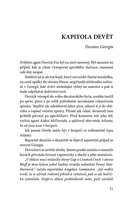 Když si Ellie u odlehlé jeskyně všimne malých stop, je přesvědčená, že patří Penny. Její život ale visí na vlásku, protože většina lidí, kteří v lesích zmizí, se už nikdy nenajde. Aby holčičku zachránila, musí se postavit svým vlastním démonům. Dokáže spolu s Derrickem překonat překážky a odhalit pravdu o všech zmizelých dívkách? Nebo si hory a zvrácený vrah vyžádají další oběť?