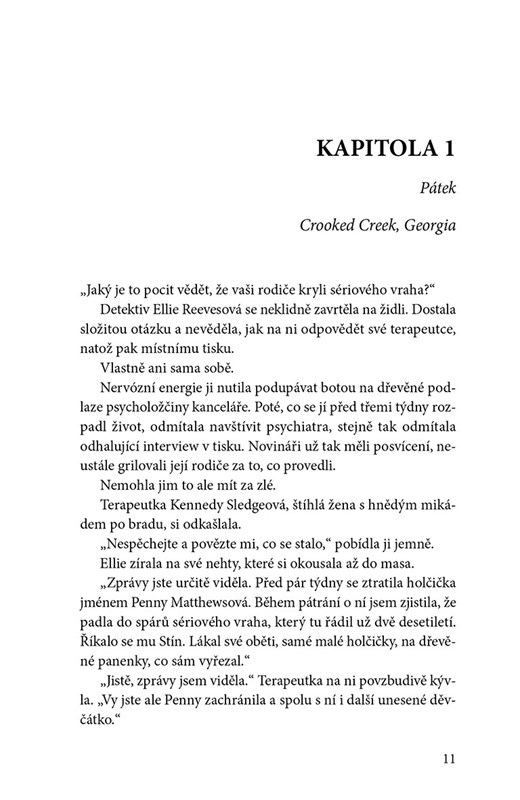 Díky své vlastní minulosti, dětství, na které se ze všech sil snaží zapomenout, Ellie ví, že divočina – a její stíny – jsou dokonalým lovištěm pro zločince. Je si jistá, že zlověstná říkanka, napsaná na starém psacím stroji, má svůj význam.