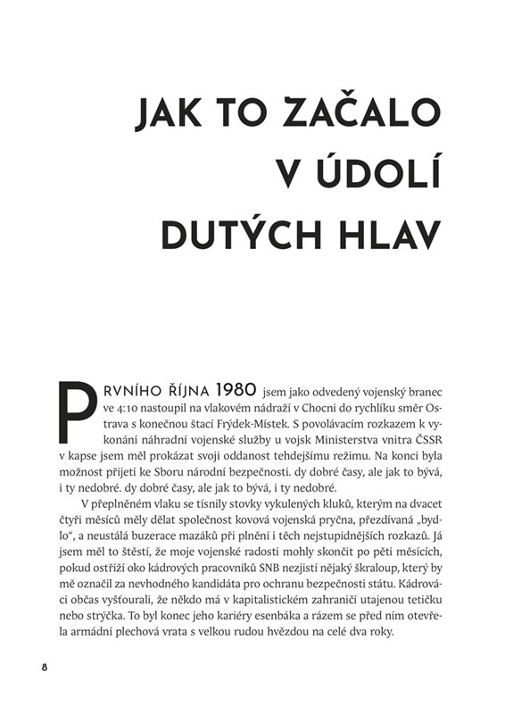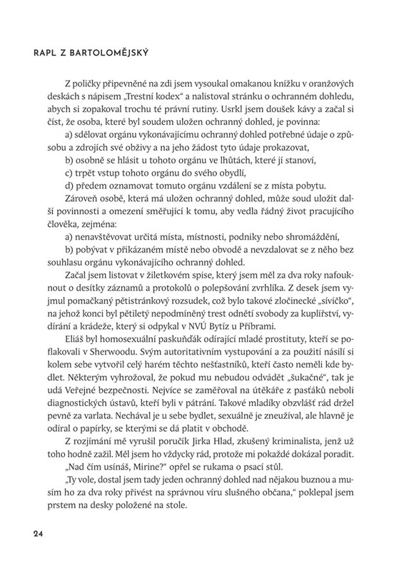 Ve své knižní prvotině odhaluje zákulisí pražského podsvětí, prostituce a špiclů osmdesátých let, kdy se spravedlnost potýkala s absurditou tehdejší doby.