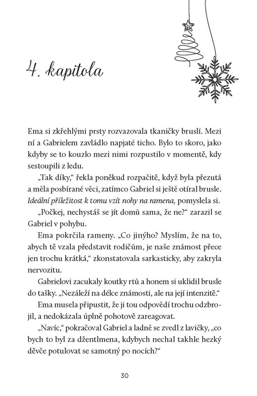 Ema a Gabriel se náhodně setkávají na vánočním trhu. Ema tu zažívá nepovedené rande a Gabriel vypomáhá u stánku, kde se půjčují a brousí brusle. Je to právě pár bruslí, který je svede dohromady a odstartuje romantický příběh, kterým prostupuje vánoční atmosféra. Otázkou zůstává, co se s nimi stane, až kouzlo Vánoc pomine. Ema sní o kariéře klavíristky a dělá vše pro to, aby se její sen vyplnil. Gabriel je vrcholový sportovec a většinu času trénuje v zahraničí. Přetrvá jejich cit i mimo sváteční období?
