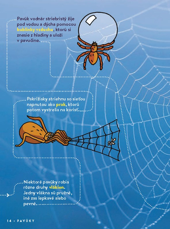 Na knižnom začiatku je samotný začiatok. Dozviete sa, aký bol vesmír veľký (či skôr malý) na počiatku, pred vznikom sveta. Nasleduje zaujímavosť o ľudskom začiatku – prezrádza, koľko kostí majú bábätká po narodení. Pokračuje sa faktami o kostre a potom sa stretnete s chrobákom lajniakom a pavúkom. Z aktuálnej strany môžete odbočiť na stranu 40, prípadne ďalej spoznávať pavúky.