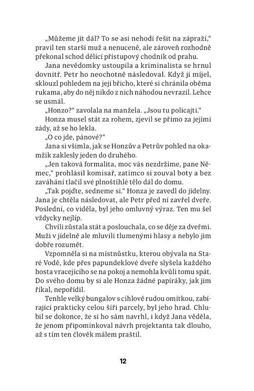 Jiří Březina tentokrát opustil kriminalistu Tomáše Volfa. Nový detektivní příběh rozehrává s jinými postavami a používá nezvyklý vypravěčský postup. V knize se vedle vyšetřování soustředí na dvě ženské hrdinky vnímající zločin z jiného úhlu pohledu.